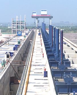 公司專業(yè)生產(chǎn)的各類平面、弧型閘門,各類卷揚(yáng)、門式、移動式啟閉機(jī),各類清污機(jī)、攔污柵、升船機(jī)、壓力鋼管、錐形閥等超大型、大型水工金屬結(jié)構(gòu)件和各類起重機(jī)遠(yuǎn)銷全國26個省、市、自治區(qū),并出口到16個國家和地區(qū),廣泛應(yīng)用于全國重點(diǎn)工程建設(shè),如長江三峽永久性船閘工程、淮河蚌埠閘擴(kuò)建工程、浙江溫州珊溪水利樞紐工程、四川岷江紫坪鋪水利樞紐工程、浙江省分水江水利樞紐工程、中國河口第一大閘曹娥江攔河大閘和港口、船舶制造企業(yè)等。